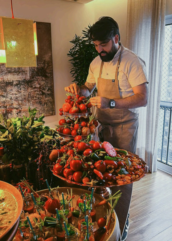O Chef Diego Gimenez traz a excelência das cozinhas de Emmanuel Bassoleil e Claude Troisgros para seu evento. Formação internacional aplicada com a alma e os sabores brasileiros.